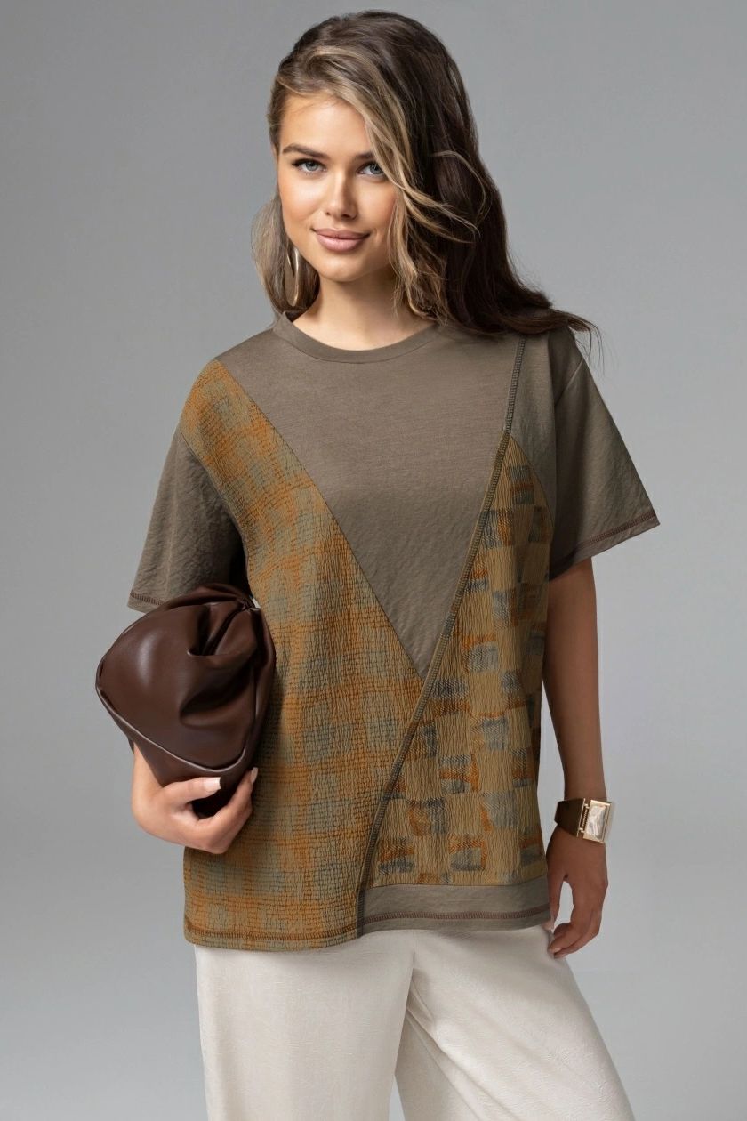Футболка трикотажная коричневая свободной посадки