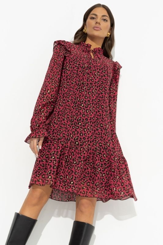 Платье шифоновое красное с принтом