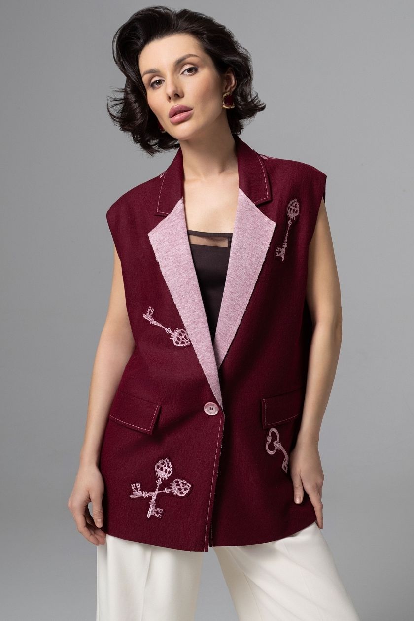 Блузка тёмно-бордового цвета с рукавами из сетки