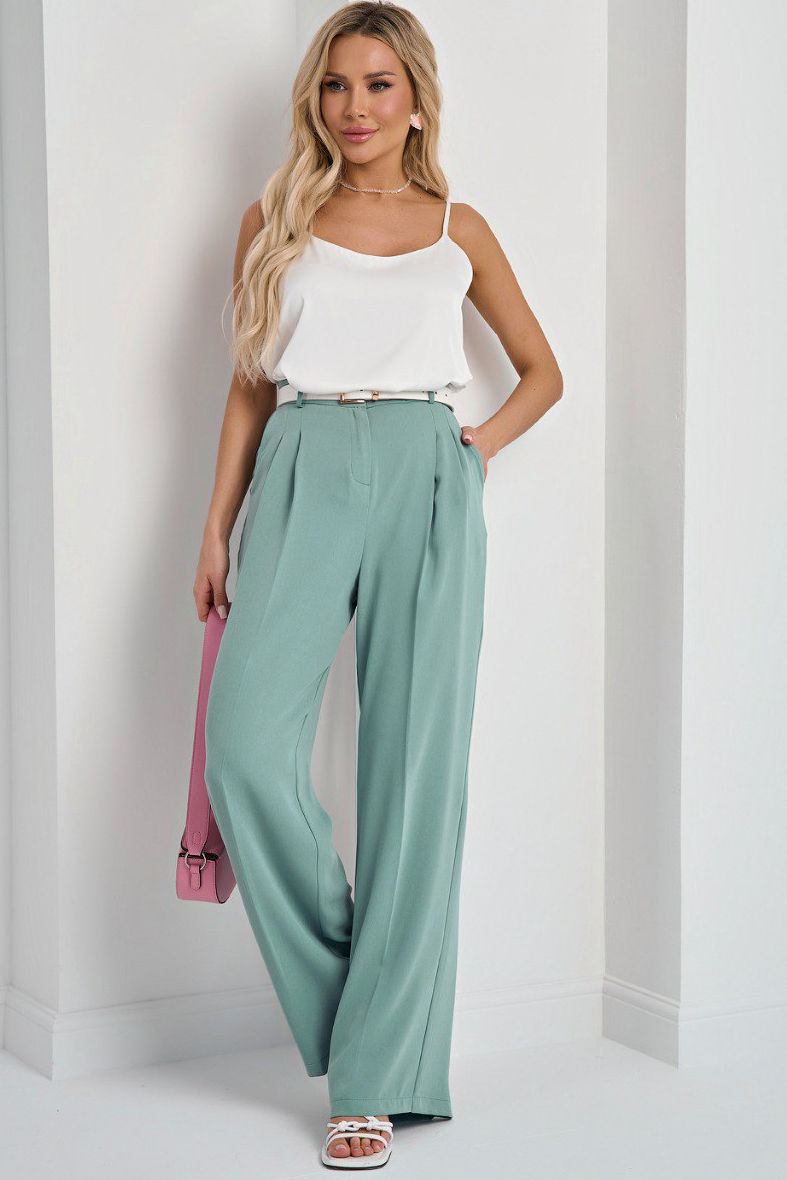 Брюки широкие серо-зелёные с карманами от компании Jetty. Модель прямого силуэта со стрелками, выполнена из костюмной ткани. Брюки на приточном поясе со шлёвками. Застёжка на молнию и пуговицу. По низу широкая подгибка. Отличный вариант для прогулок с друзьями. Ремень из экокожи в комплект не входит, продается отдельно.