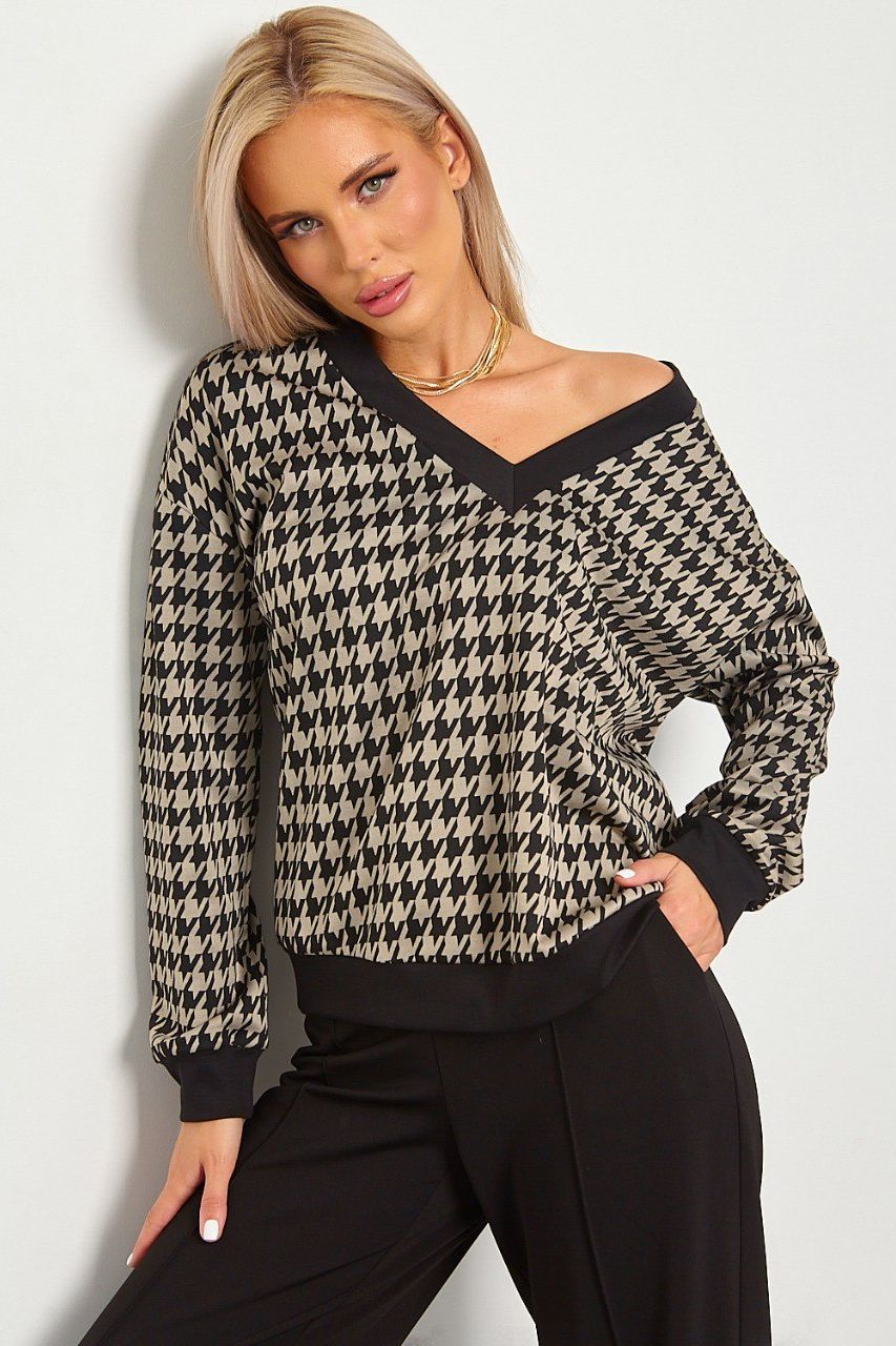 Джемпер трикотажный чёрно-бежевый