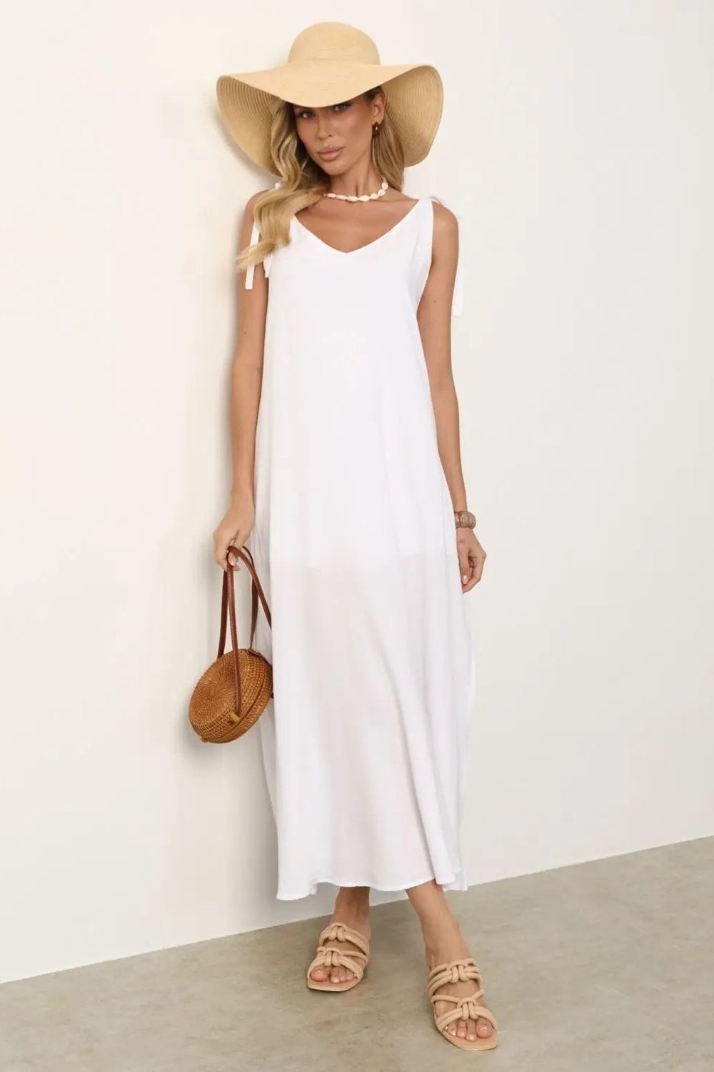 Сарафан длинный белого цвета с разрезами
