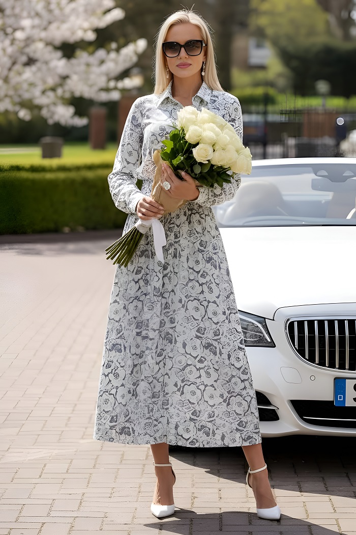 Платье длинное молочного цвета с поясом Снова красиво, нежная
