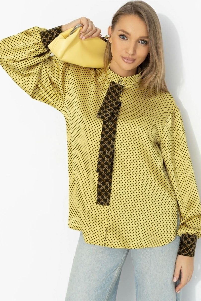 Рубашка атласная жёлтая в горошек