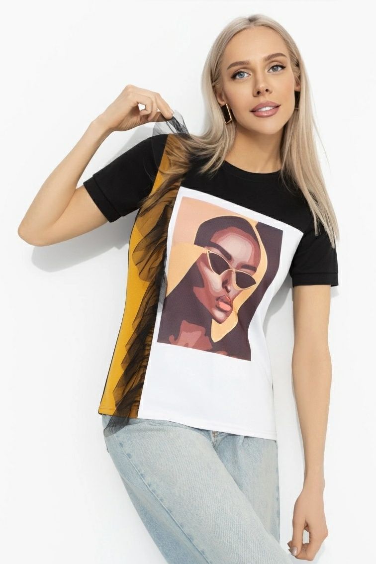 Футболка чёрная с объёмным декором