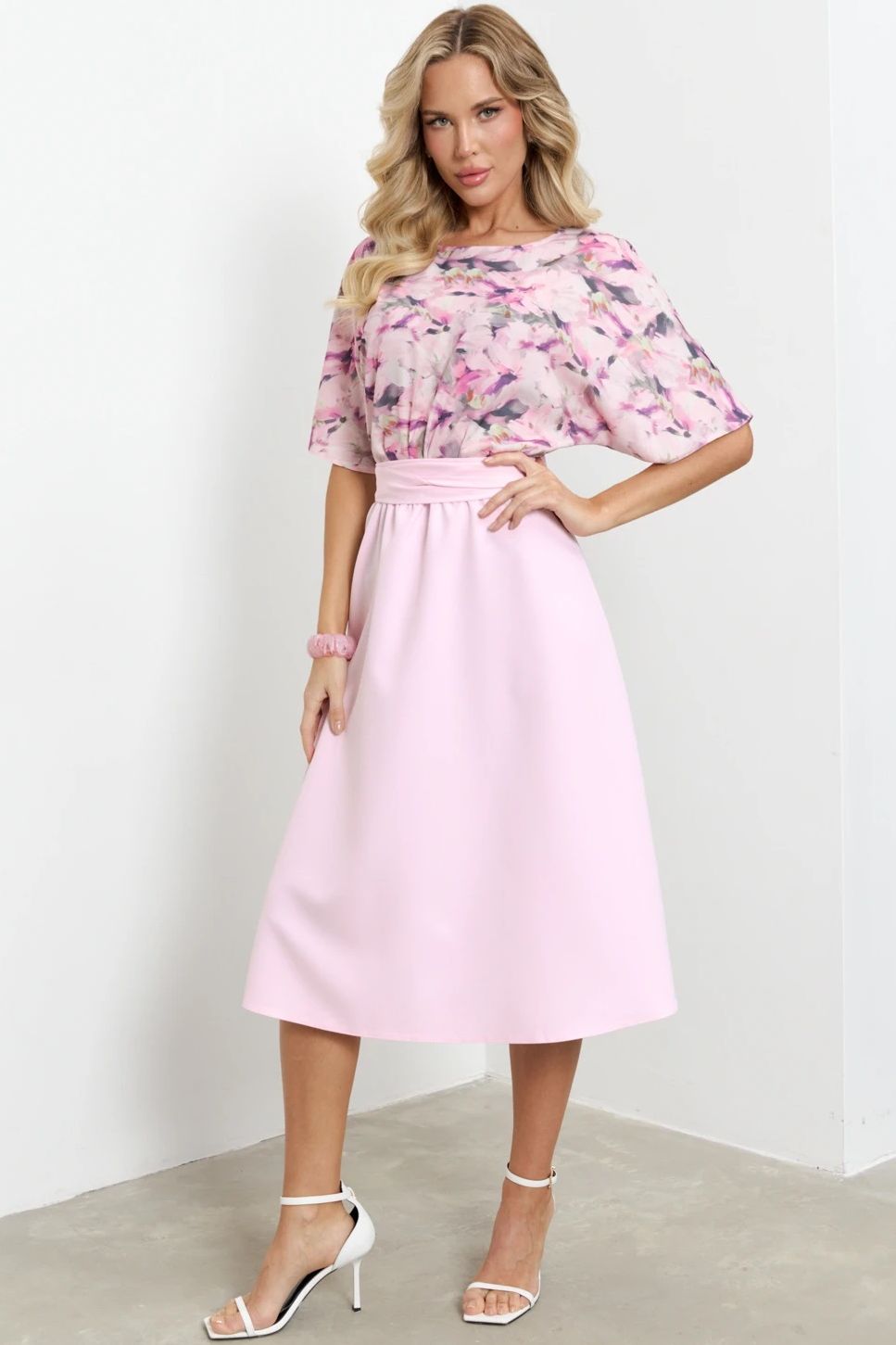 Платье комбинированное с поясом