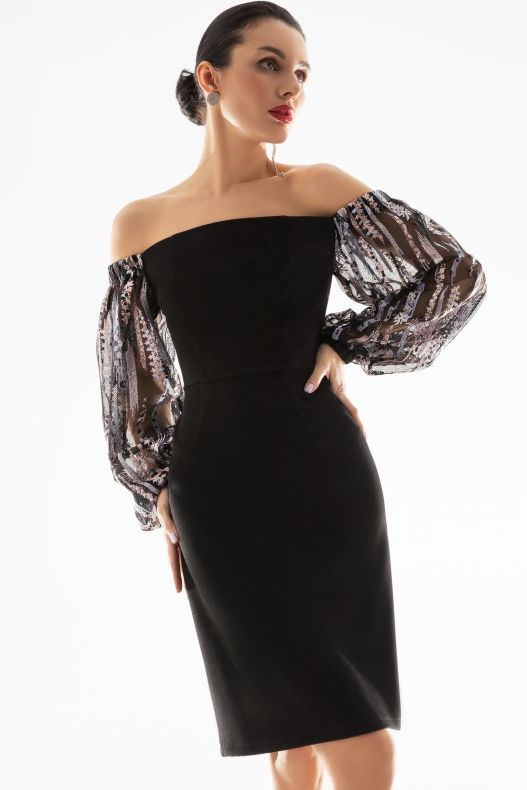 Чёрное платье-футляр с пышными рукавами