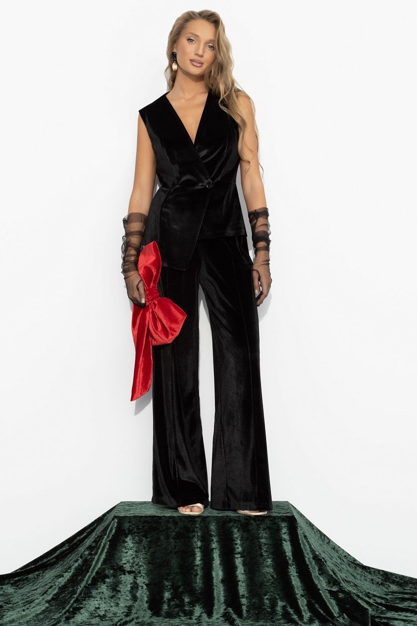 Брюки чёрные из бархата от компании Charutti. Свободный крой и высокая посадка создают безупречный силуэт и ощущение внутреннего равновесия. Брюки на резинке.