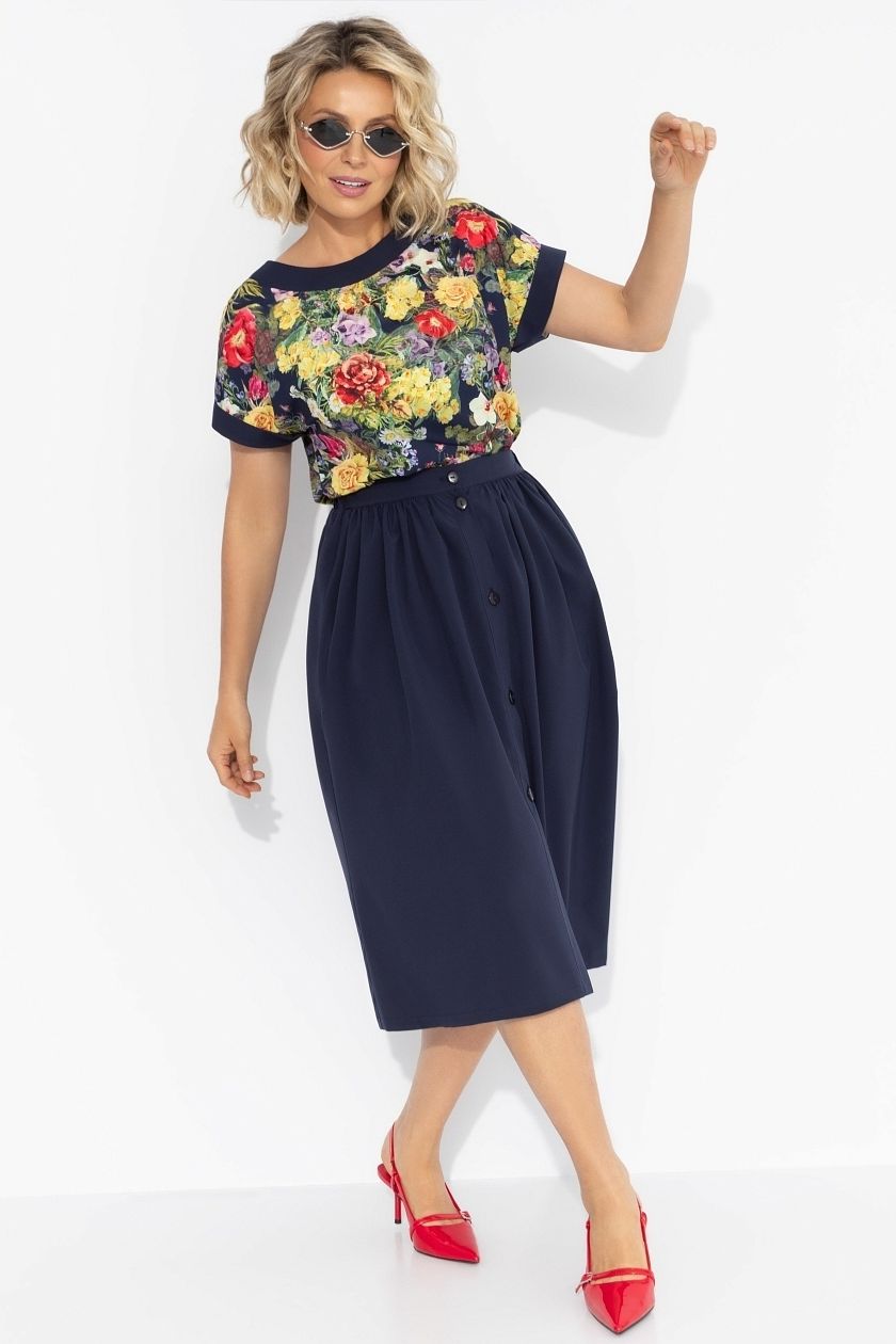 Комплект синий с юбкой на пуговицах