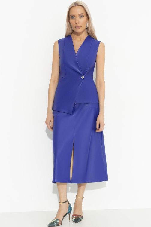 Юбка синяя из экокожи с разрезом