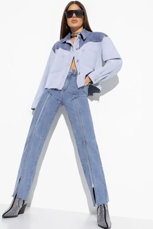 Голубые джинсы с молниями по переду 52 размера