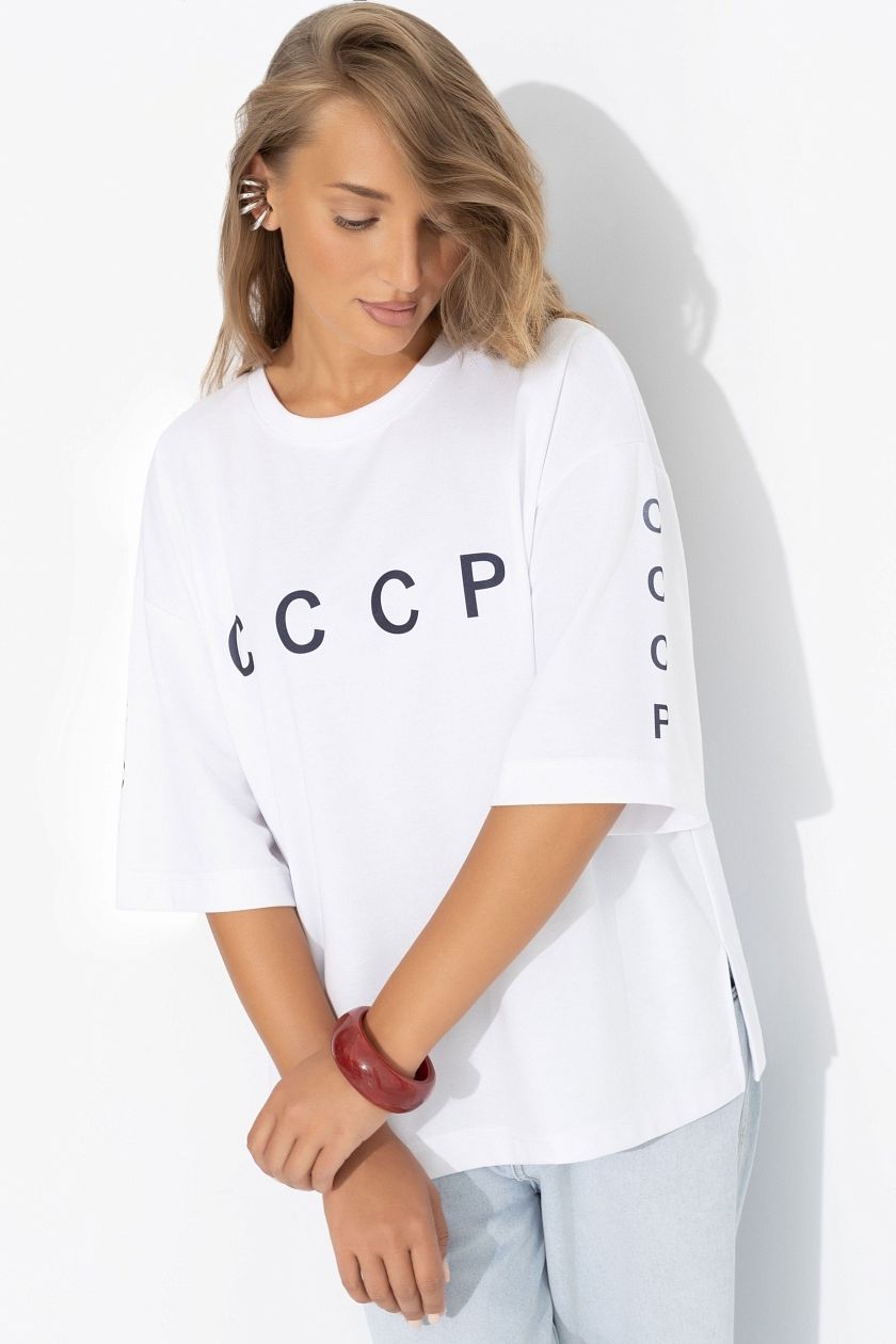 Футболка белая свободная с карманами