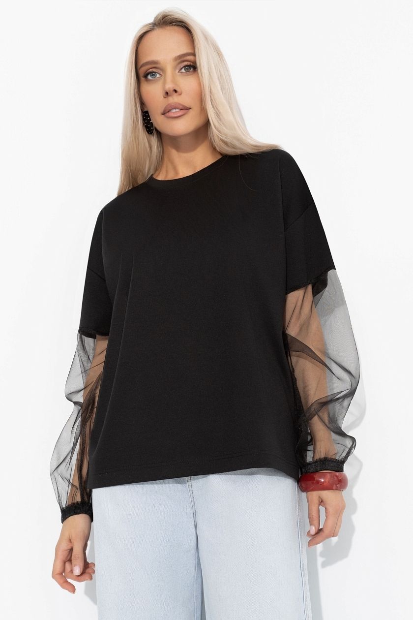 Футболка чёрная с акцентными рукавами