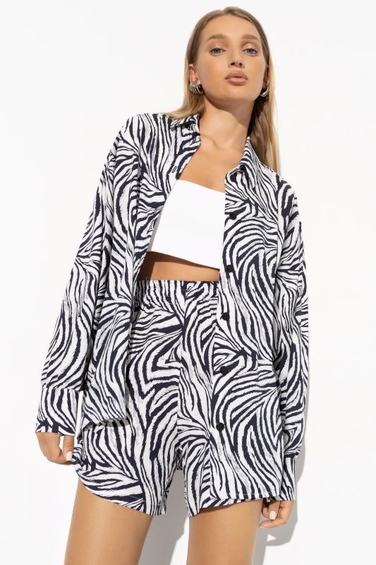 Костюм с шортами и рубашкой в трендовой расцветке зебра