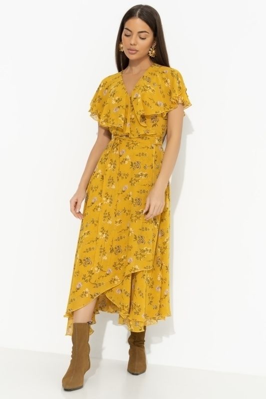 Платье шифоновое жёлтое на запах