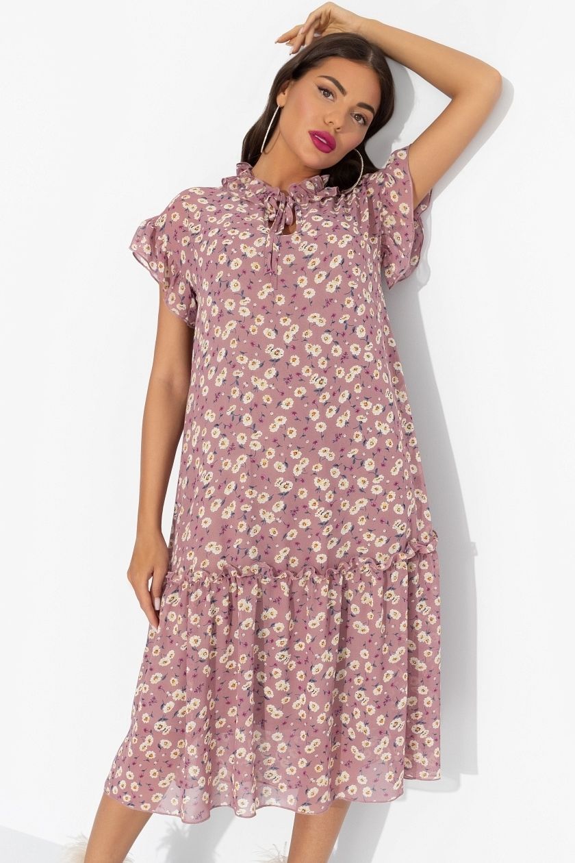 Платье шифоновое с рюшами