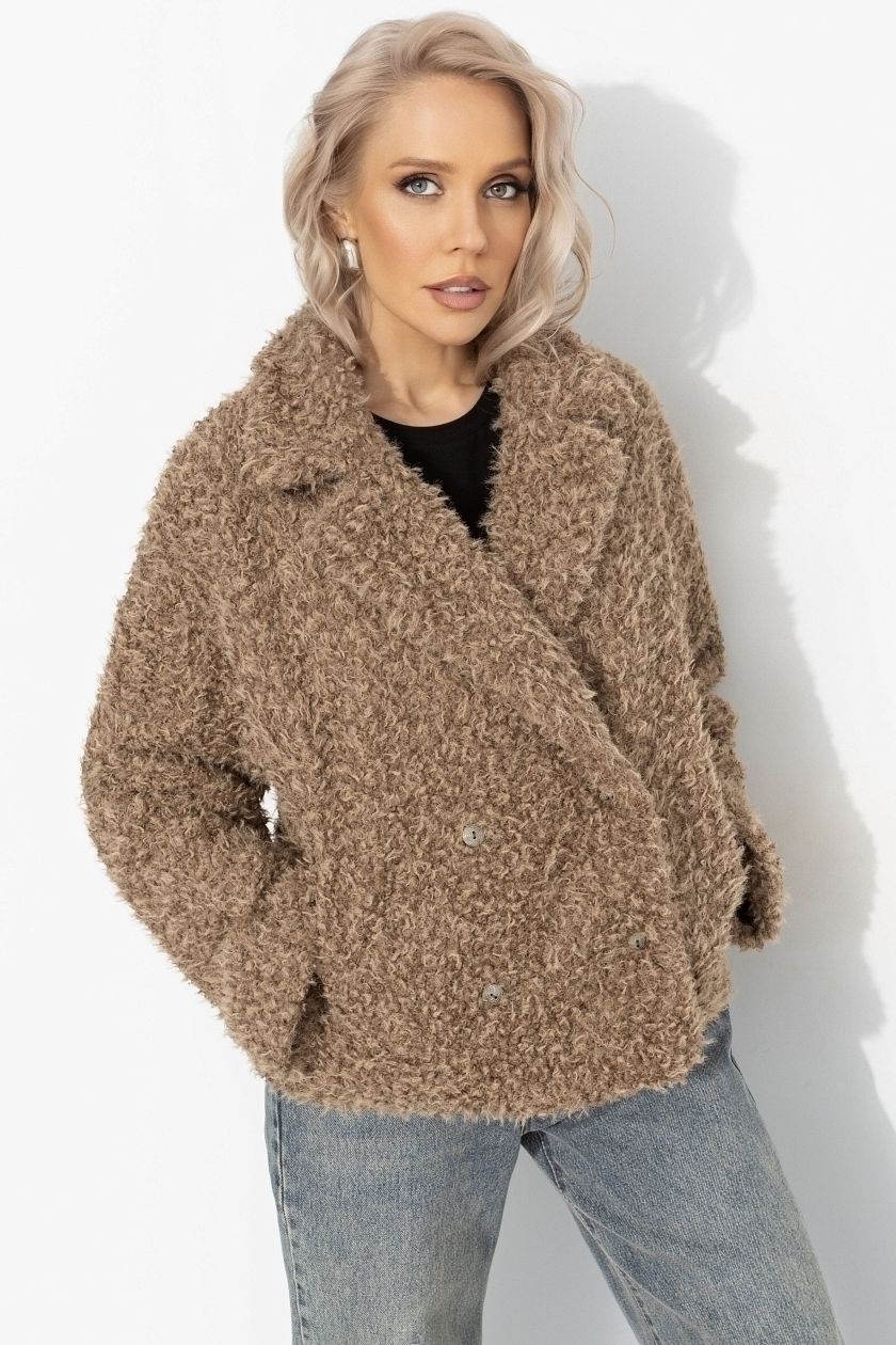 Полупальто бежевое с акцентным подкладом