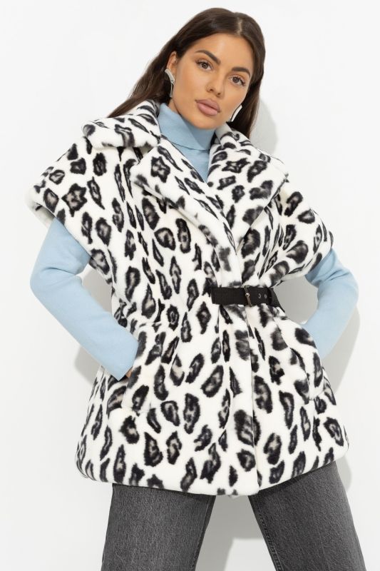 Жилет меховой белый на подкладе от компании Charutti. Модель в стиле oversize с широкой линией плеч и лацканами. В часть изделия вшит ремень на регулируемой застёжке, который формирует приталенный силуэт. Идеальный вариант под любой наряд - супер-находка для современных леди.